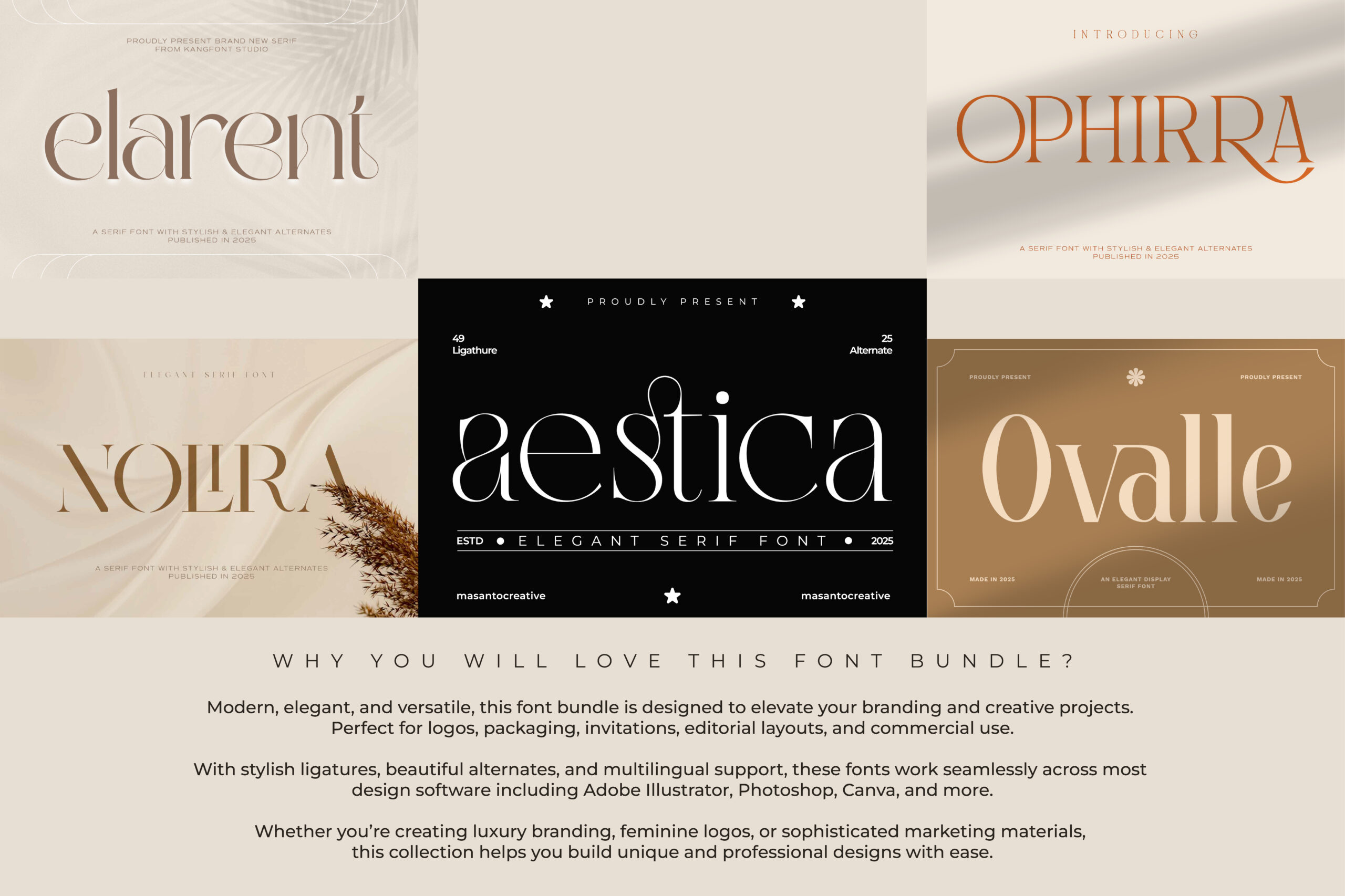 Unlike single fonts, bundles give you more flexibility to experiment with different moods—from classic editorial elegance to modern luxury branding.